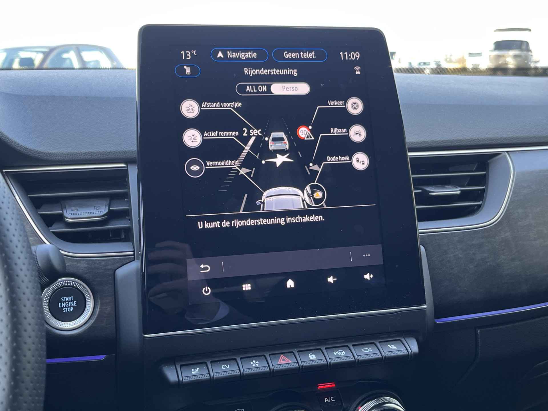 Aan boord van deze Renault houden verschillende geavanceerde systemen voor u de weg in de gaten. Ze waarschuwen u voor noodsituaties en kunnen in een aantal gevallen ook zelf ingrijpen. De actuele snelheidslimiet, een inhaalverbod en andere verkeersborden. De verkeersborddetectie ondersteunt u tijdens elke rit. Keep your lane? Het Lane-keeping systeem zorgt er automatisch voor. Het forward collision warning-systeem is constant alert en detecteert via sensor de afstand tot voorliggers. Wordt die te klein, dan volgt een automatische waarschuwing. Bovenop deze veiligheidsfeatures heeft deze Renault bovendien dodehoekdetectie, hill hold functie, brake assist, vermoeidheidsherkenning en bandenspanningcontrolesysteem.