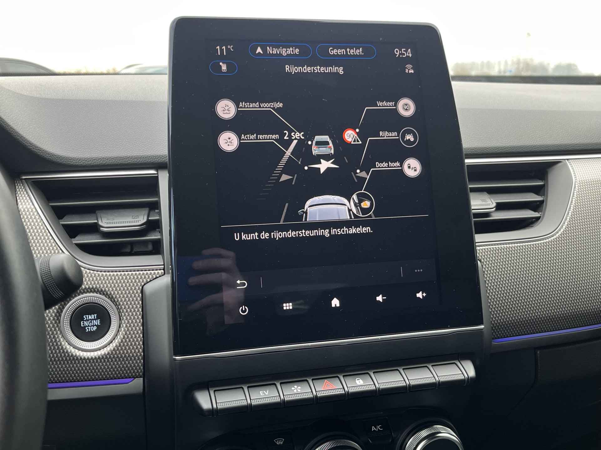 Deze Renault biedt u niet alleen comfort en rijplezier, maar ook veiligheid. Actieve veiligheidssystemen houden voor u de weg in de gaten en reageren op onvoorziene situaties voordat u dat kunt. Verkeersborddetectie herkent tijdelijke en permanente verkeersborden langs en boven de weg. Het Lane-keeping systeem zorgt dat u mooi binnen de lijntjes blijft. Ongemerkt buiten de rijstrook komen is er niet meer bij. De forward collision warning reduceert het gevaar van een botsing met een voorligger significant. Ook helpen het dodehoekdetectie, hill hold functie, brake assist en bandenspanningcontrolesysteem, uw rit tot een veilige rit te maken.