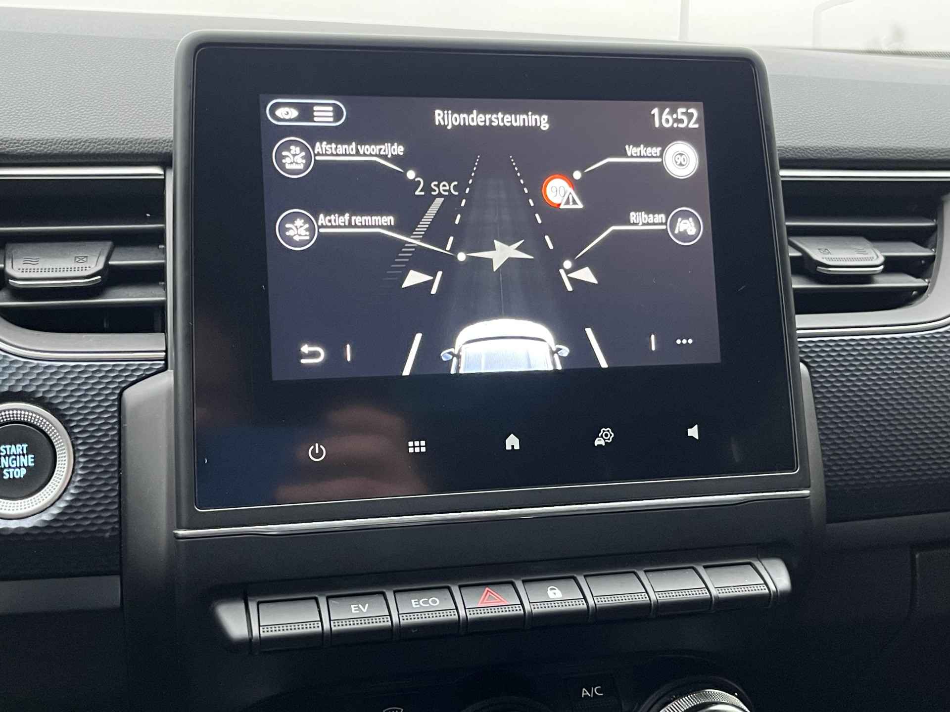 Deze auto is voorzien van innovatieve systemen die u onderweg begeleiden en beschermen. Een belangrijke bijdrage aan de veiligheid onderweg levert de verkeersbord-detectie in deze Renault. Het Lane-keeping systeem registreert permanent of u binnen de lijnen van de rijstrook blijft; dwaalt u onbedoeld af, dan waarschuwt het systeem en corrigeert de koers. Het forward collision warning-systeem waarschuwt indien een botsing dreigt met een voorliggend of tegemoetkomend voertuig. Ook helpen het hill hold functie, autonoom remsysteem en bandenspanningcontrolesysteem, uw rit tot een veilige rit te maken.