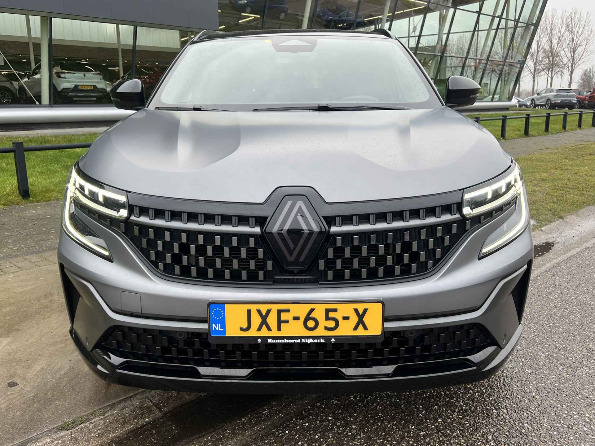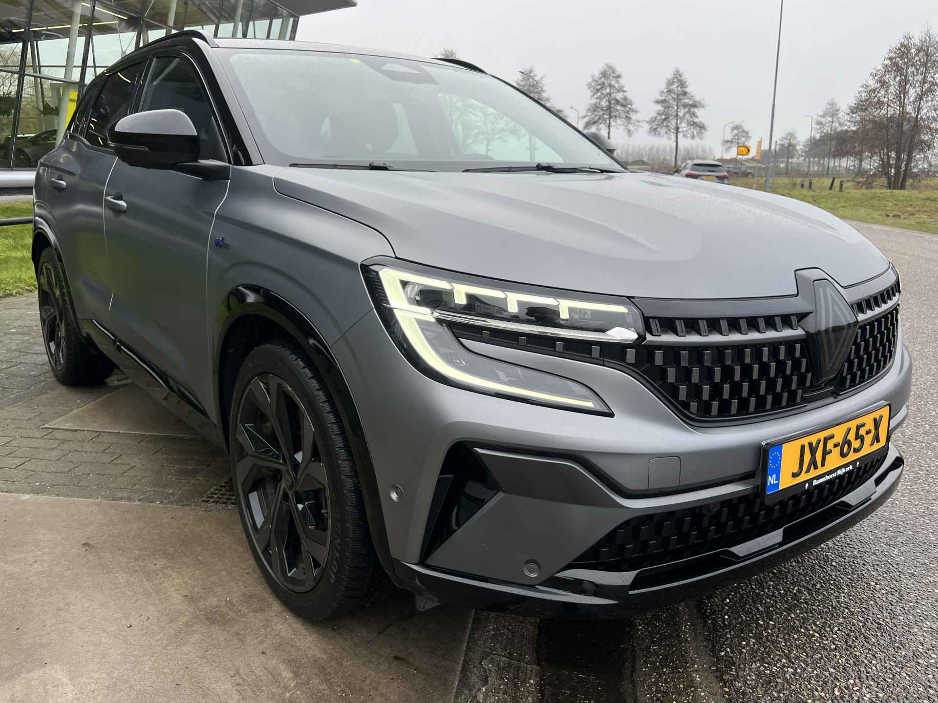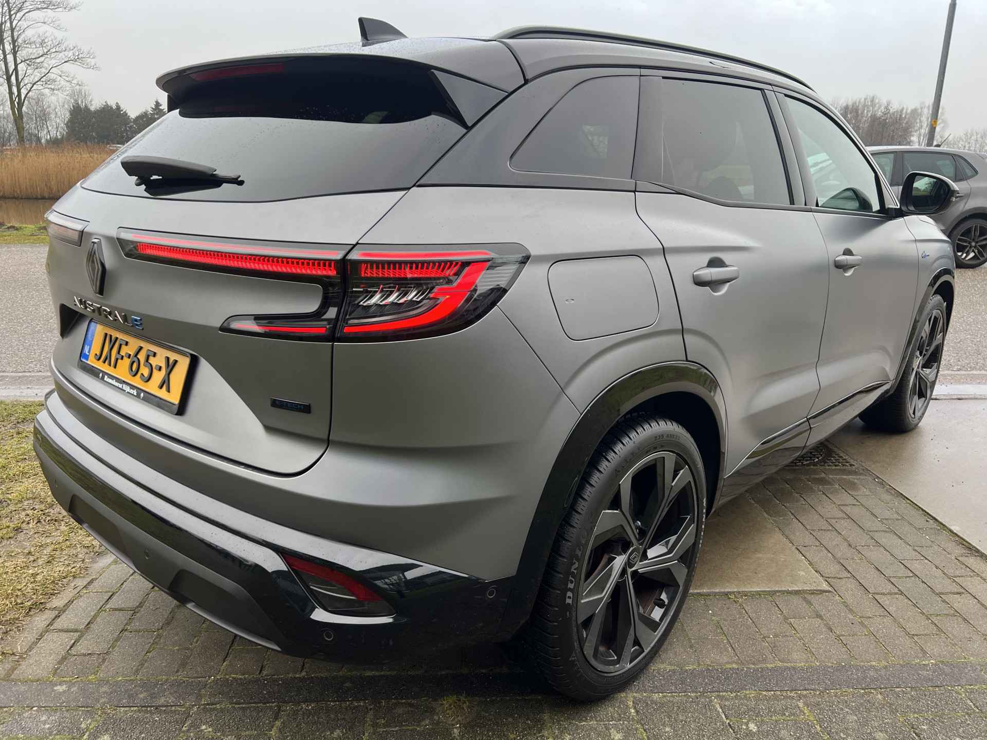 De matgrijze kleur op de Renault Austral heet officieel Satin Gris Schiste. Deze exclusieve, matte lak is ontworpen om de sportieve vormen van de auto te benadrukken