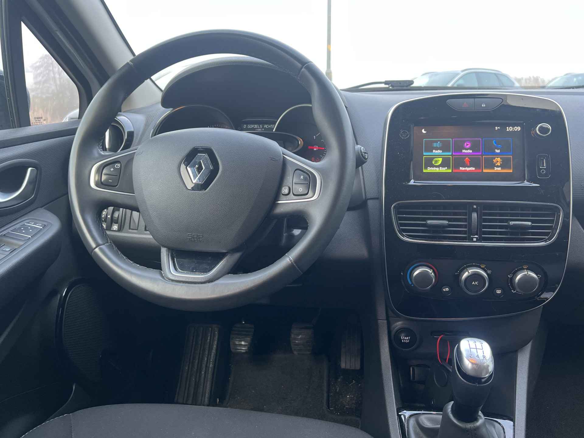 Selecteer uw reisbestemming en het full map navigatiesysteem brengt u snel waar u moet zijn. Radarsensoren aan de achterkant van de auto zorgen voor een achteropkomend verkeer waarschuwing als de afstand tot het verkeer achter te klein wordt. De radio bedienen zonder uw handen van het stuur te halen: het kan in deze auto dankzij de audiobediening op het stuurwiel. Met de DAB-ontvanger heeft u keuze uit talloze digitale radiozenders met de allerhoogste geluidskwaliteit. Kom-maar-kom-maar...ho! Zo eenvoudig is het voordeel van parkeersensoren. En zo behulpzaam! Ook is de Renault uitgerust met: cruise control, keyless entry, airconditioning, lederen stuur, bagage afdekhoes en boordcomputer.