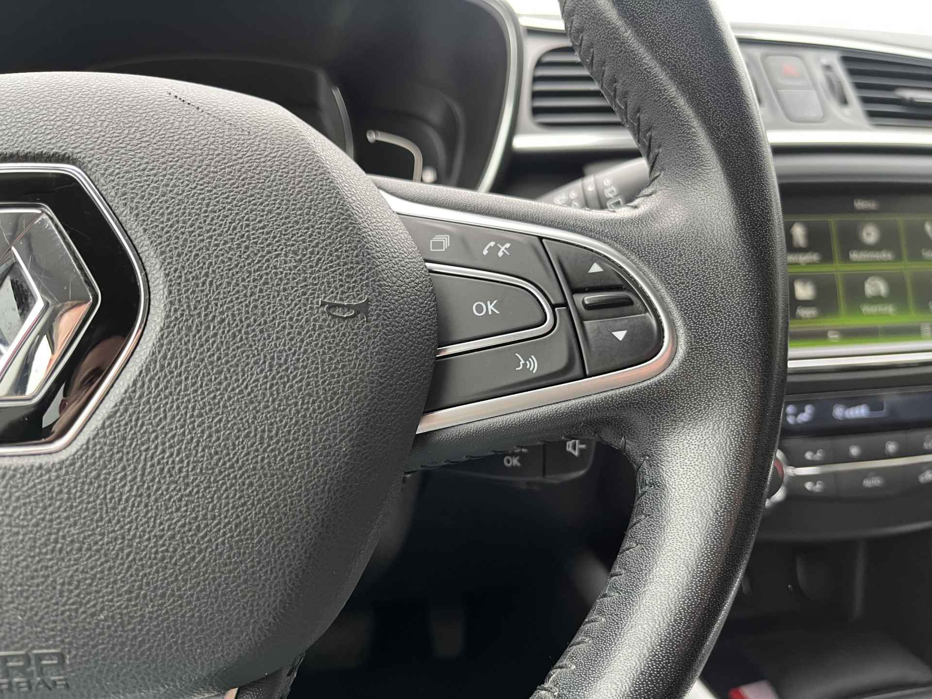 Met de achteruitrijcamera ziet u wat er achter de auto gebeurt. Zo rijdt u moeiteloos achteruit. Spraaksturing maakt het eenvoudiger en veiliger om deze auto onderweg te bedienen. Je weet altijd waar je moet zijn, dankzij het full map navigatiesysteem. Het comfort wordt verhoogd door de aanwezige automatische airconditioning. Voor storingvrije digitale radio-ontvangst zorgt de DAB-ontvanger. Met regensensor, cruise control, keyless entry, lederen stuur en lederen versnellingspook is deze Renault helemaal compleet.